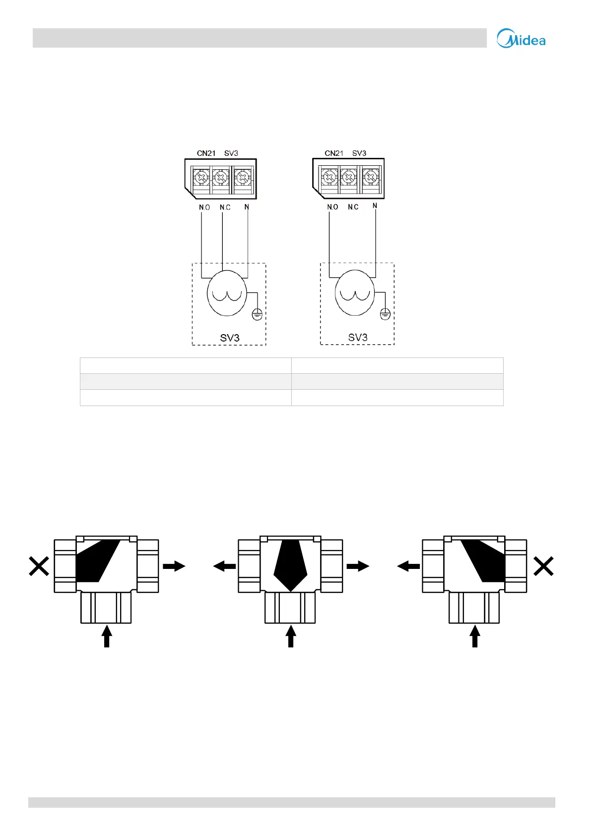 Check the three-way valve type. Connect it to the electric control board. For instructions on how to connect ports and wires.