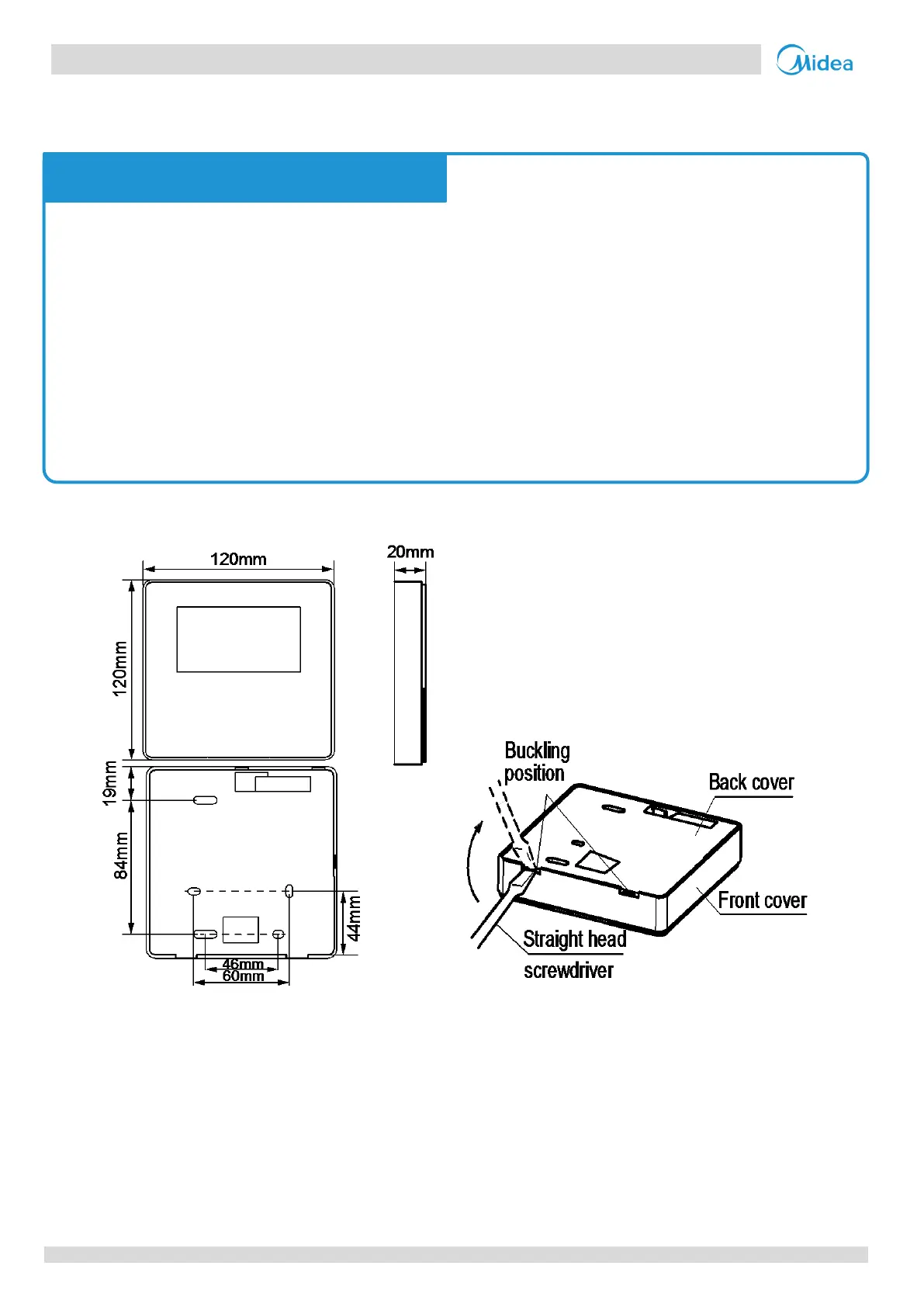 ① Insert the tip of a straight head screwdriver into the bending location at the bottom of the wired controller. Raise the