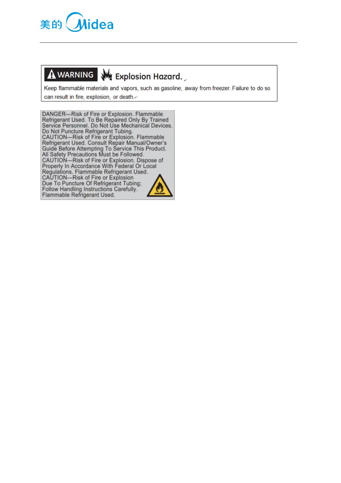 Midea SO-BD386WE-UT - Safety Instruction for Refrigerant
