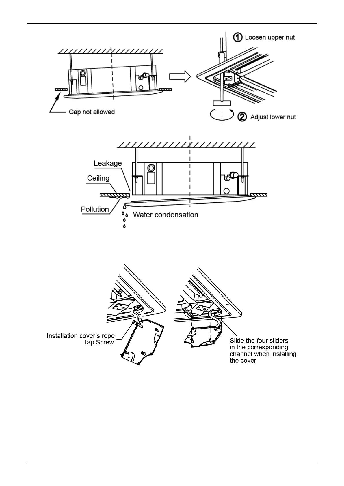 Hang the air-in grill to the panel, then connect the lead terminator of the swing motor and that of the control