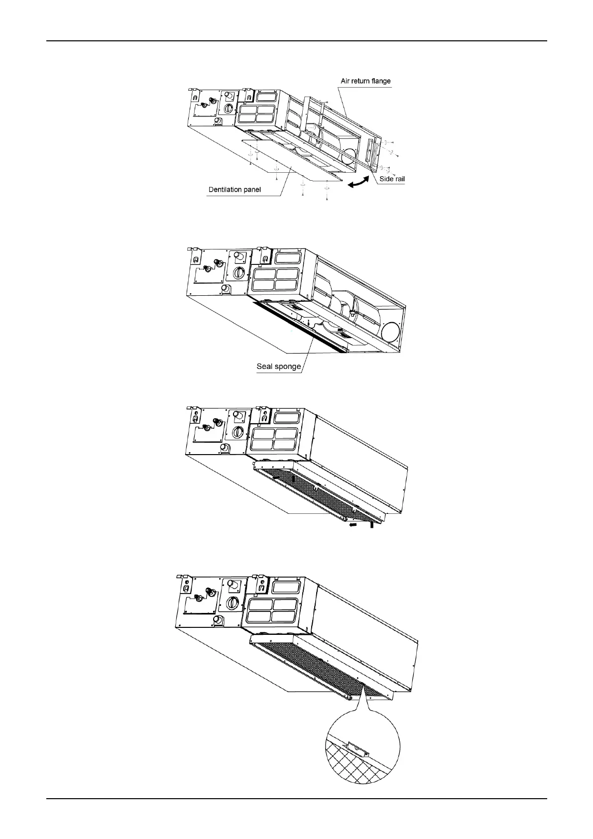 ③ When install the filter mesh, please plug it into flange inclined from air return opening, and then push up.