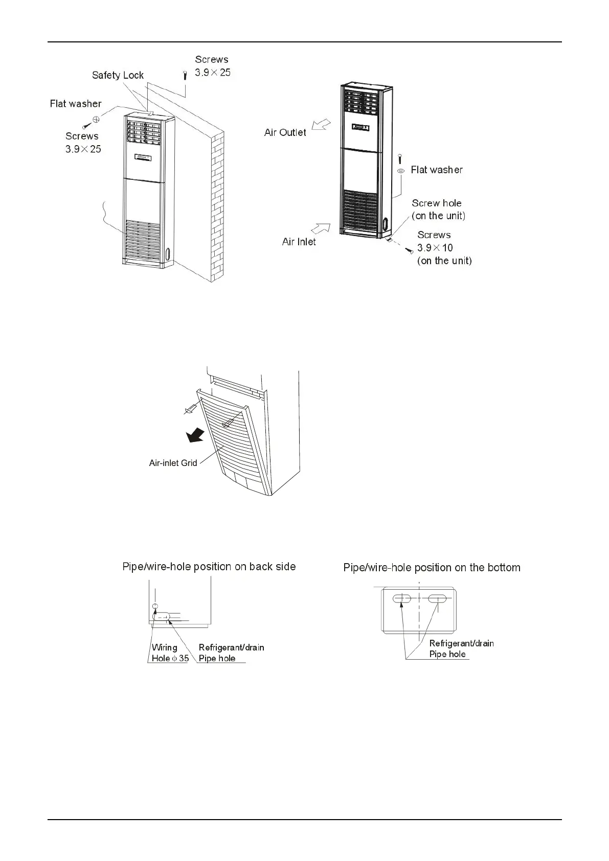 Please take off the air-inlet grid before connecting the pipes/wires.