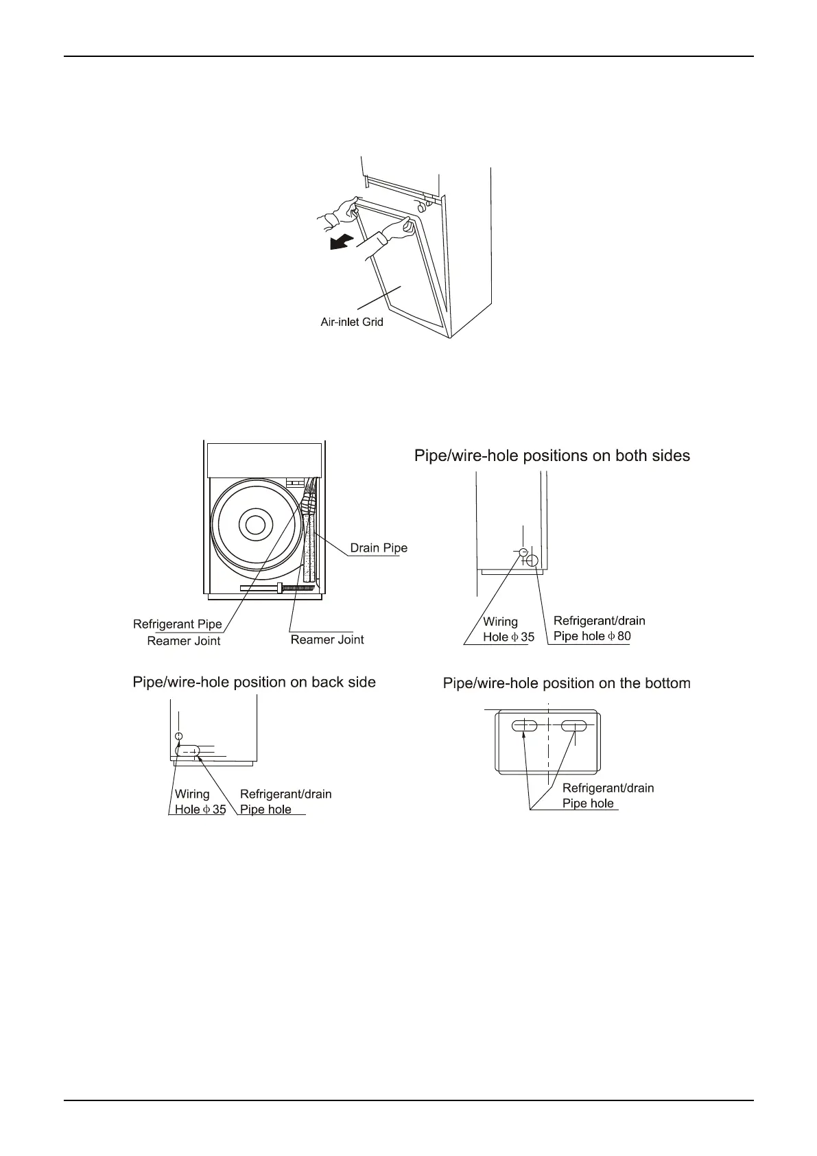 Please take off the air-inlet grid before connecting the pipes/wires.