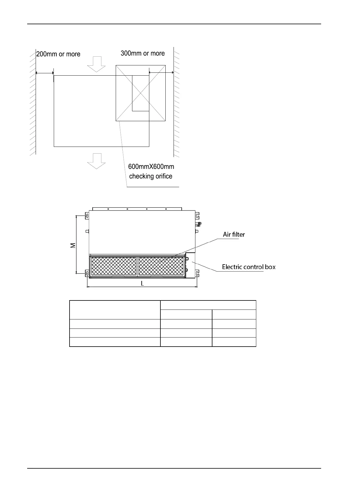 1. Please refer to the upper data to locate the four positioning screw bolt hole on the ceiling. Be sure to mark