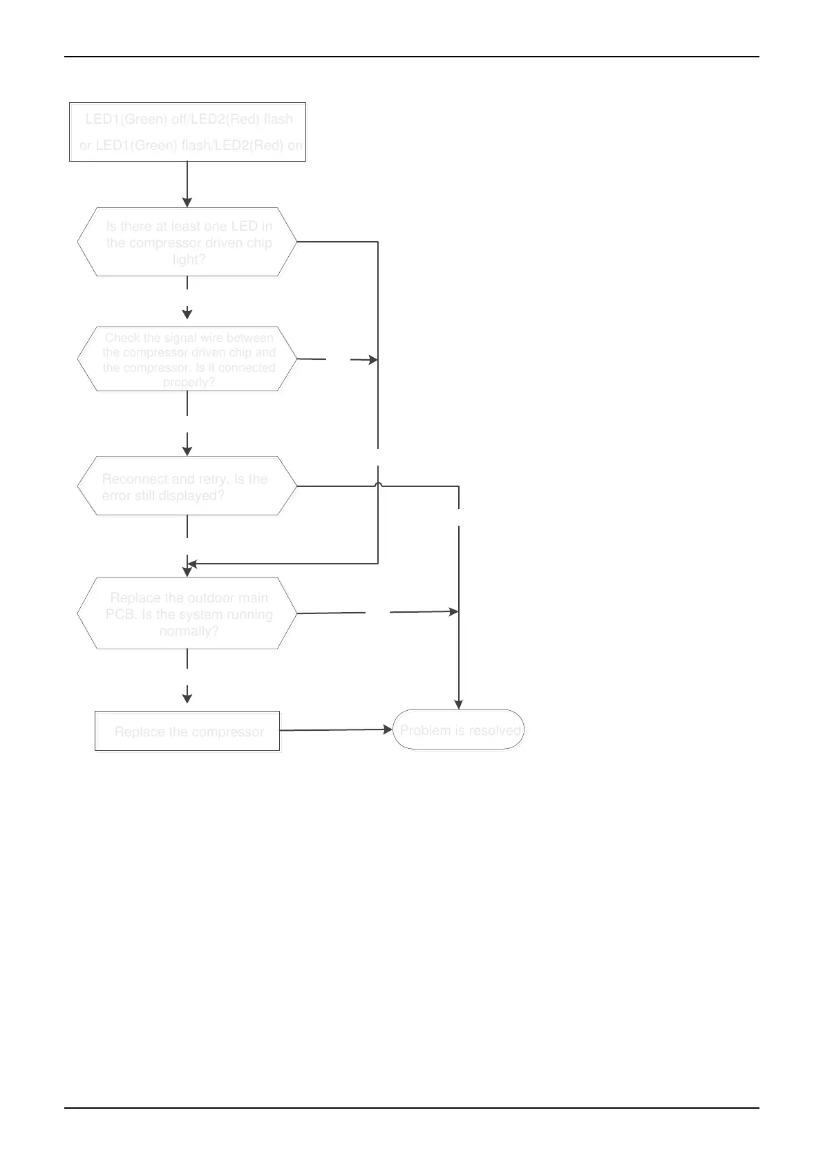 LED1(Green) off/LED2(Red) flash