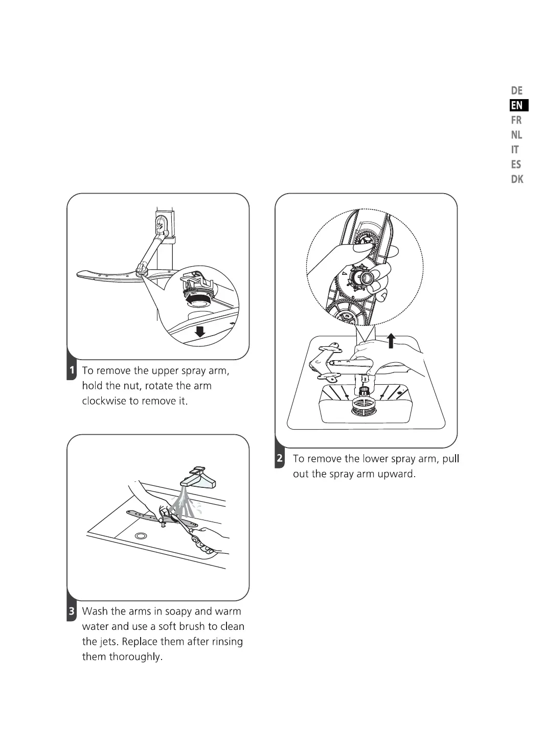 Thesprayarmsmustbecleanedregularly,ashardwaterandchemicals