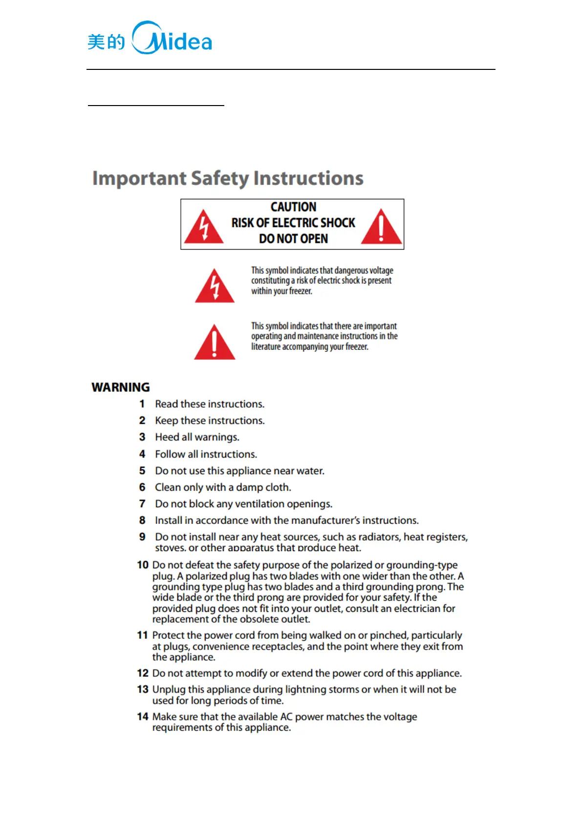 Midea UL-BCD283WE-DQ - 1 Safety Warning Code; Warning for Operation Safety