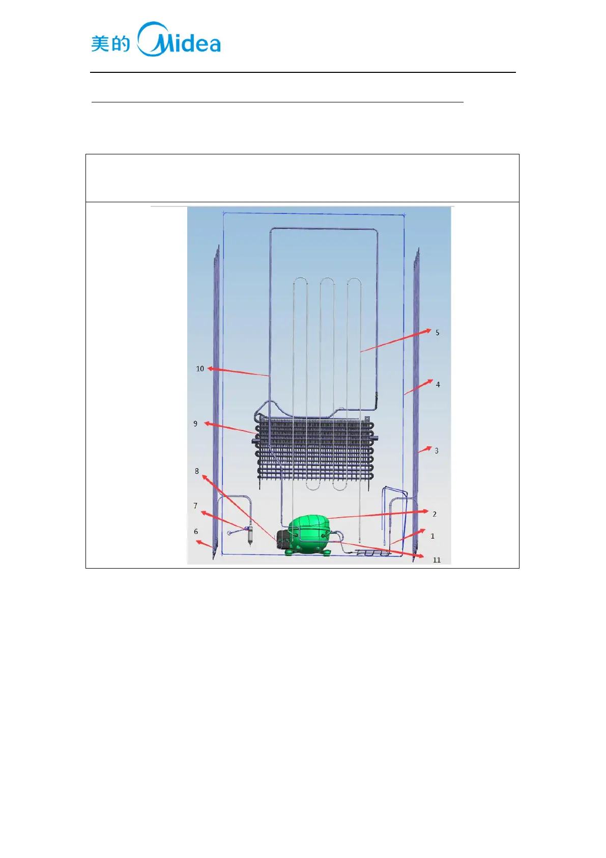 condenser→6Right condenser→7Dry filter→8Capillary tube→9Evaporator→10Suction