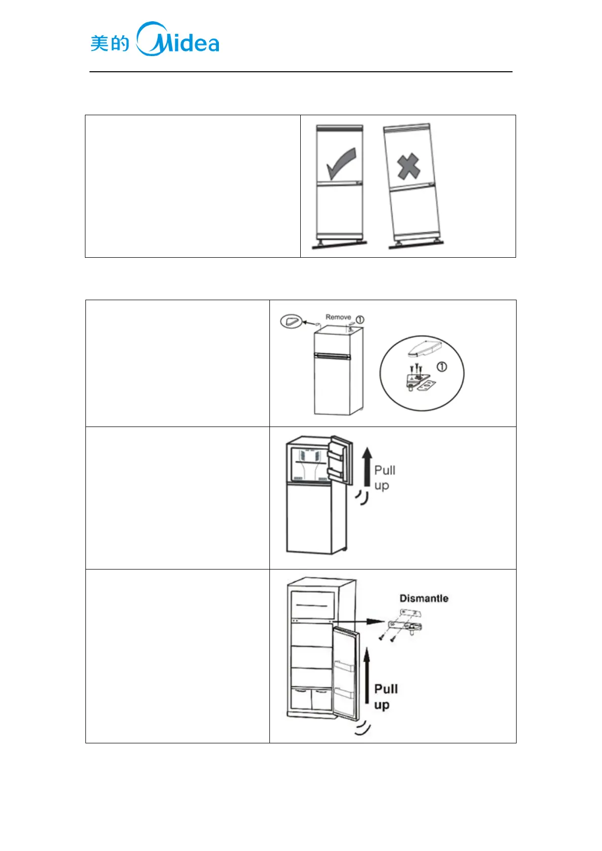 Midea UR-BCD280WE-DQ - Leveling of the Refrigerator; Change the Door Opening Direction