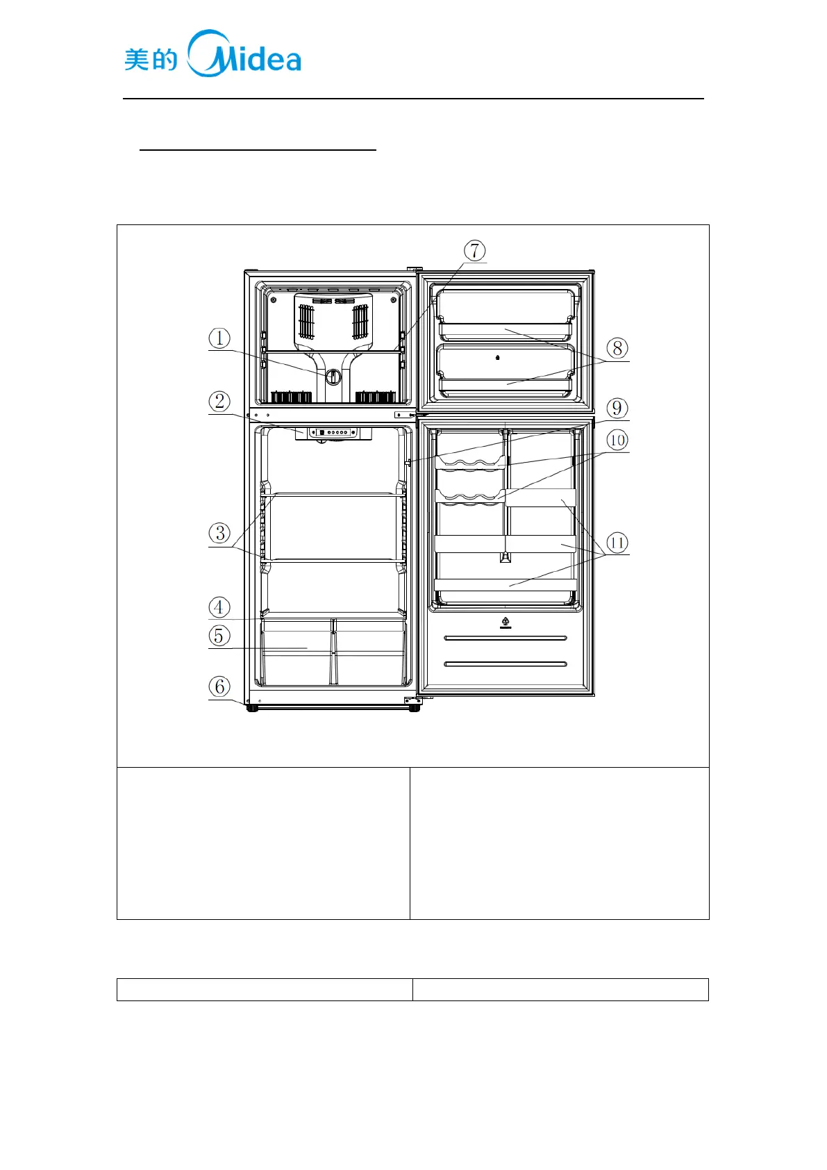 Midea UR-BCD280WE-DQ - Internal View and Dimension; Main Parts and Their Names; External Dimension