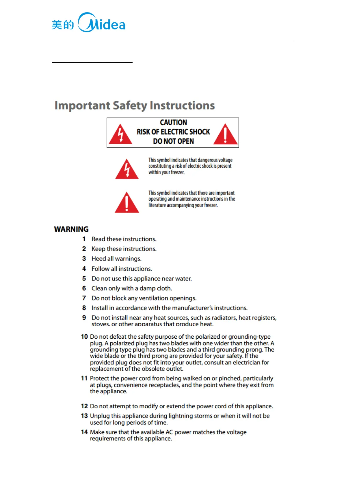 Midea UR-BCD280WE-DQ - Safety Warning Code; Warning for Operation Safety