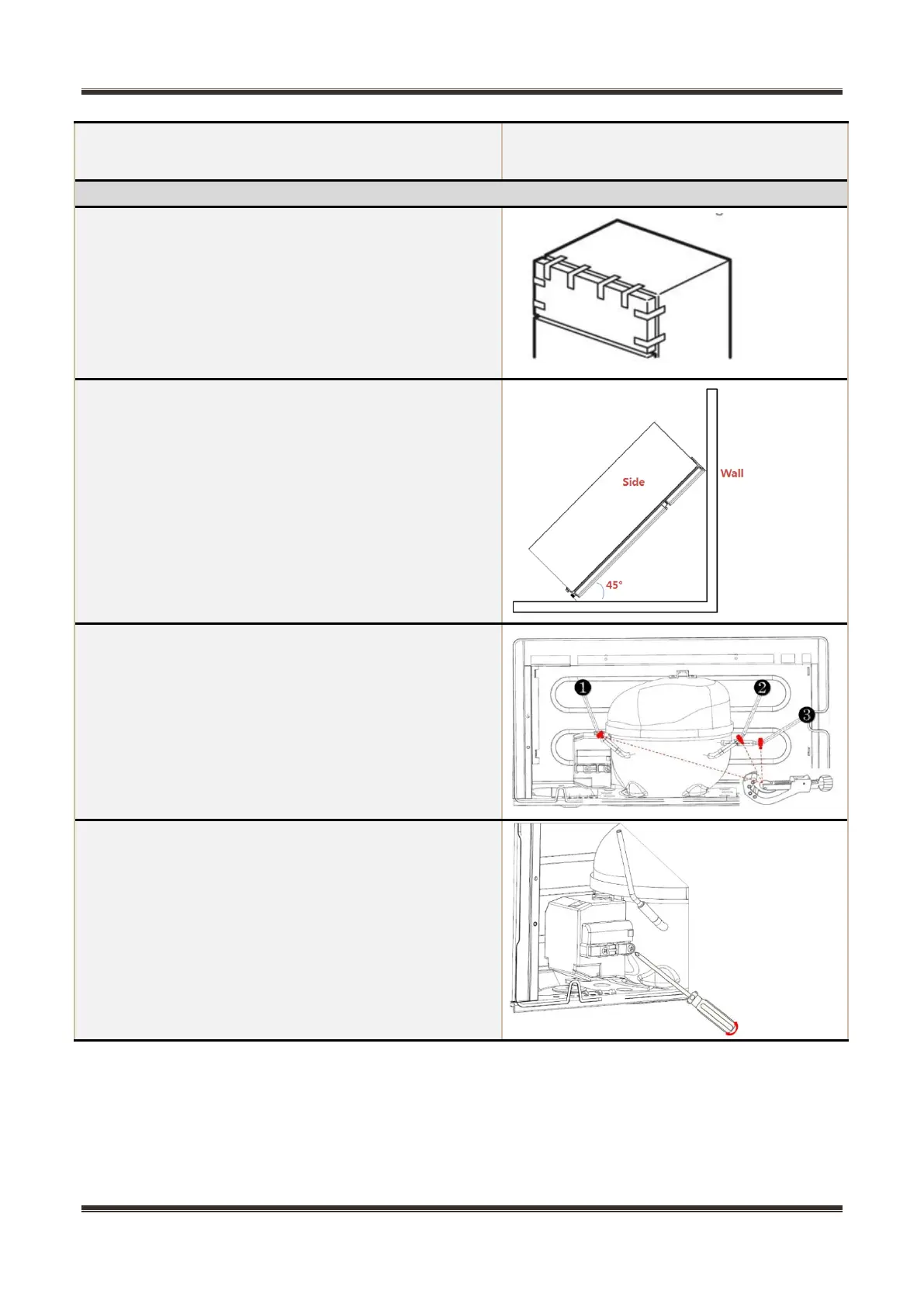 2)Slowly tilt the refrigerator forward, relying on the wall or