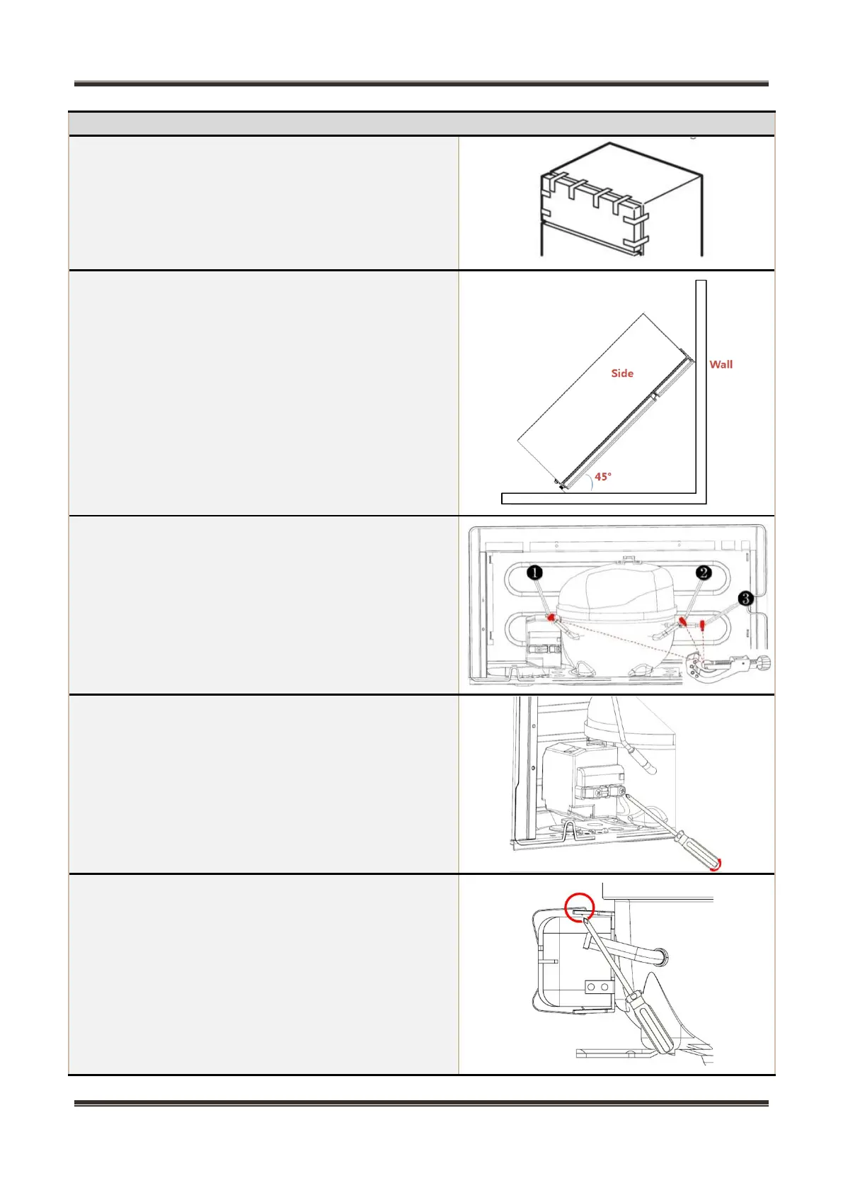 2)Slowly tilt the refrigerator forward, relying on the wall or