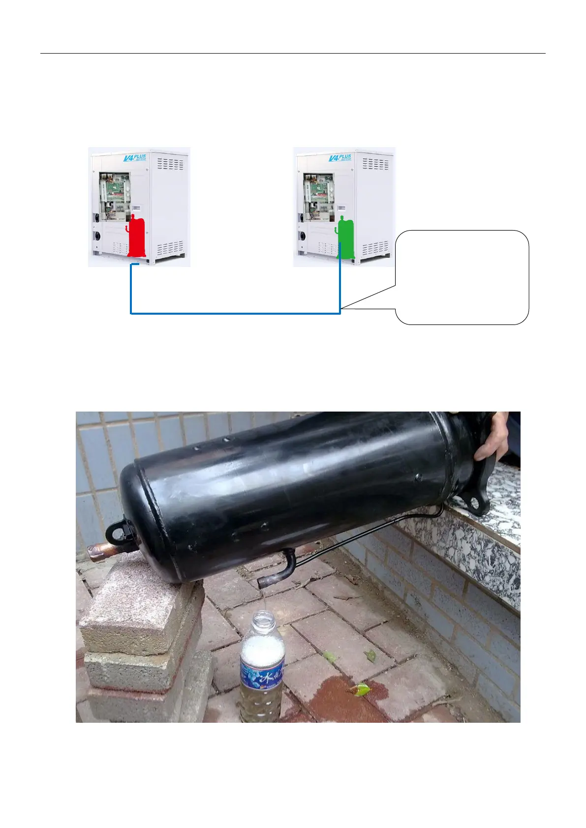 to the method illustrated. Normally the oil will outflow from the discharge pipe of the compressor.