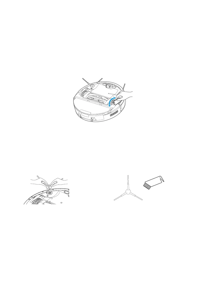 Rotate the main wheels back and forth to remove debris or dust - remove and take out the hair or debris with the