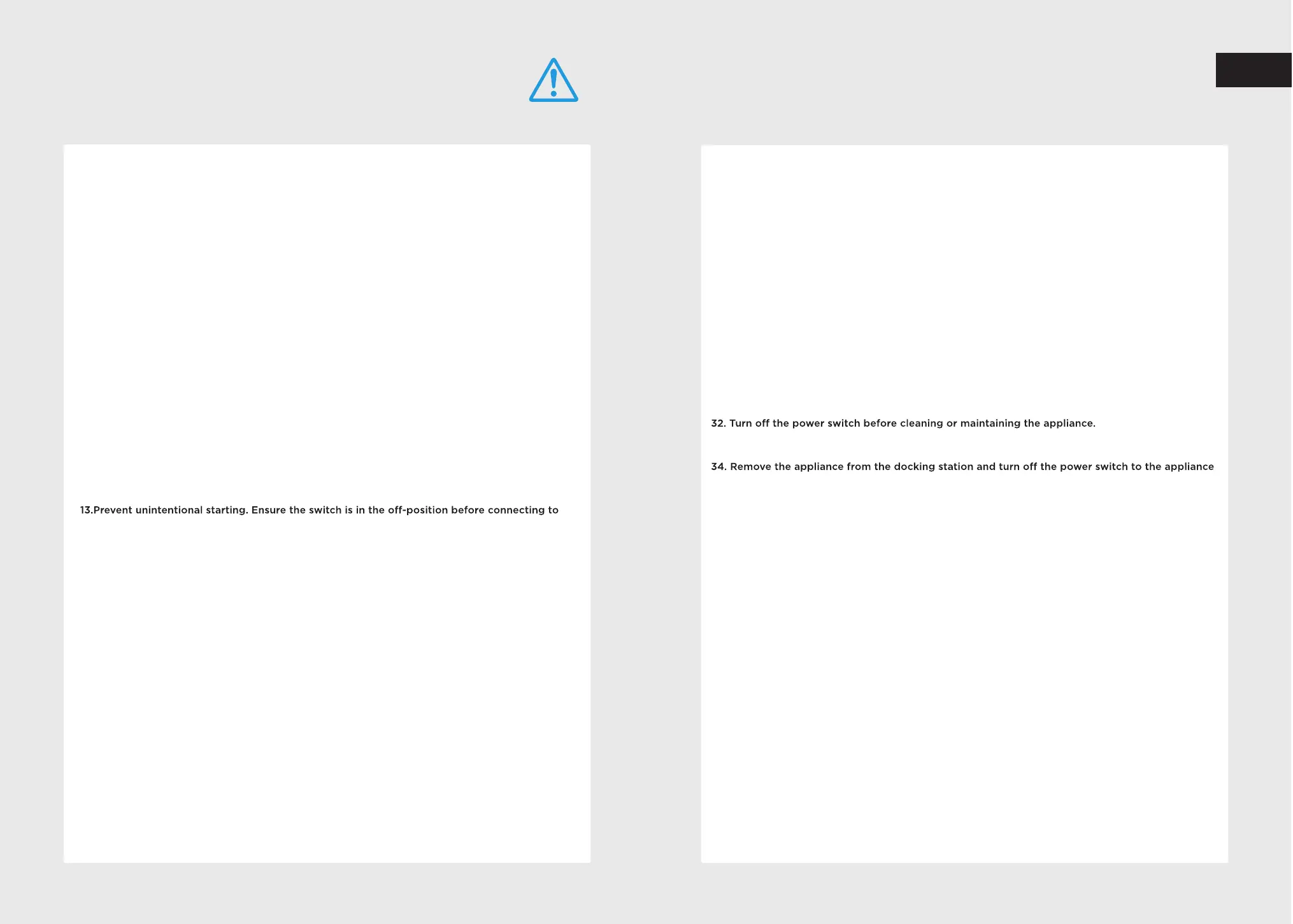 33. The plug must be removed from the receptacle before cleaning or maintain the docking