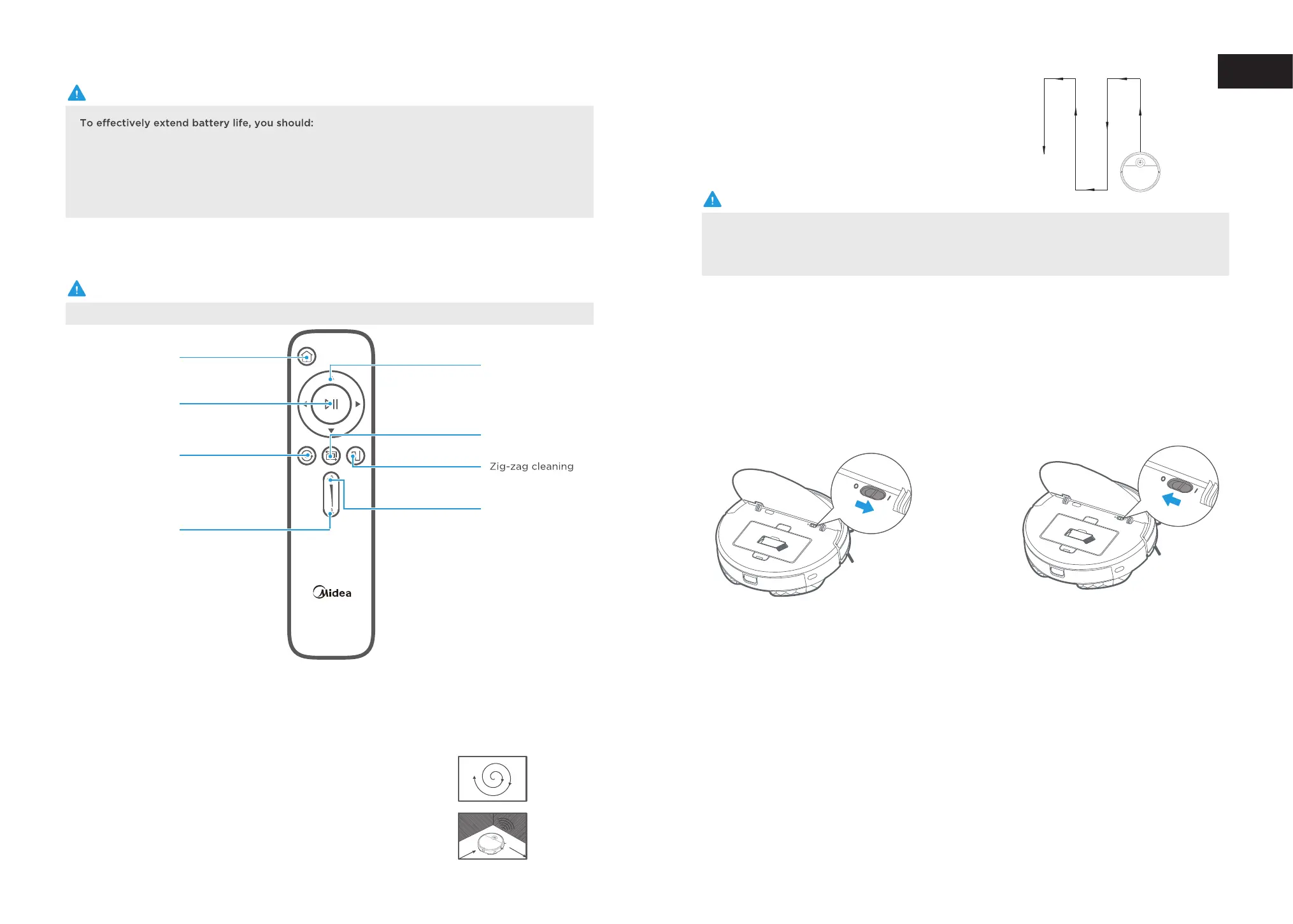 Zig-zag cleaning: The robot will clean in a zig-zag route.