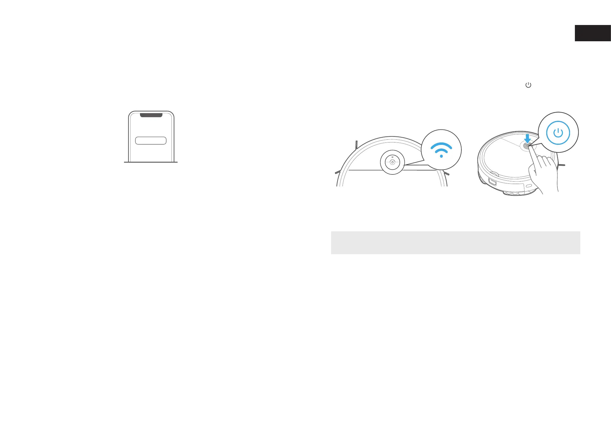 After assembling and powering on the robot, press and hold down the " " button for 3 seconds