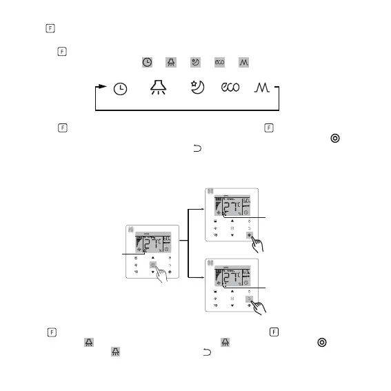 Press (Function) button to switch to the function that can be set in the current mode (see