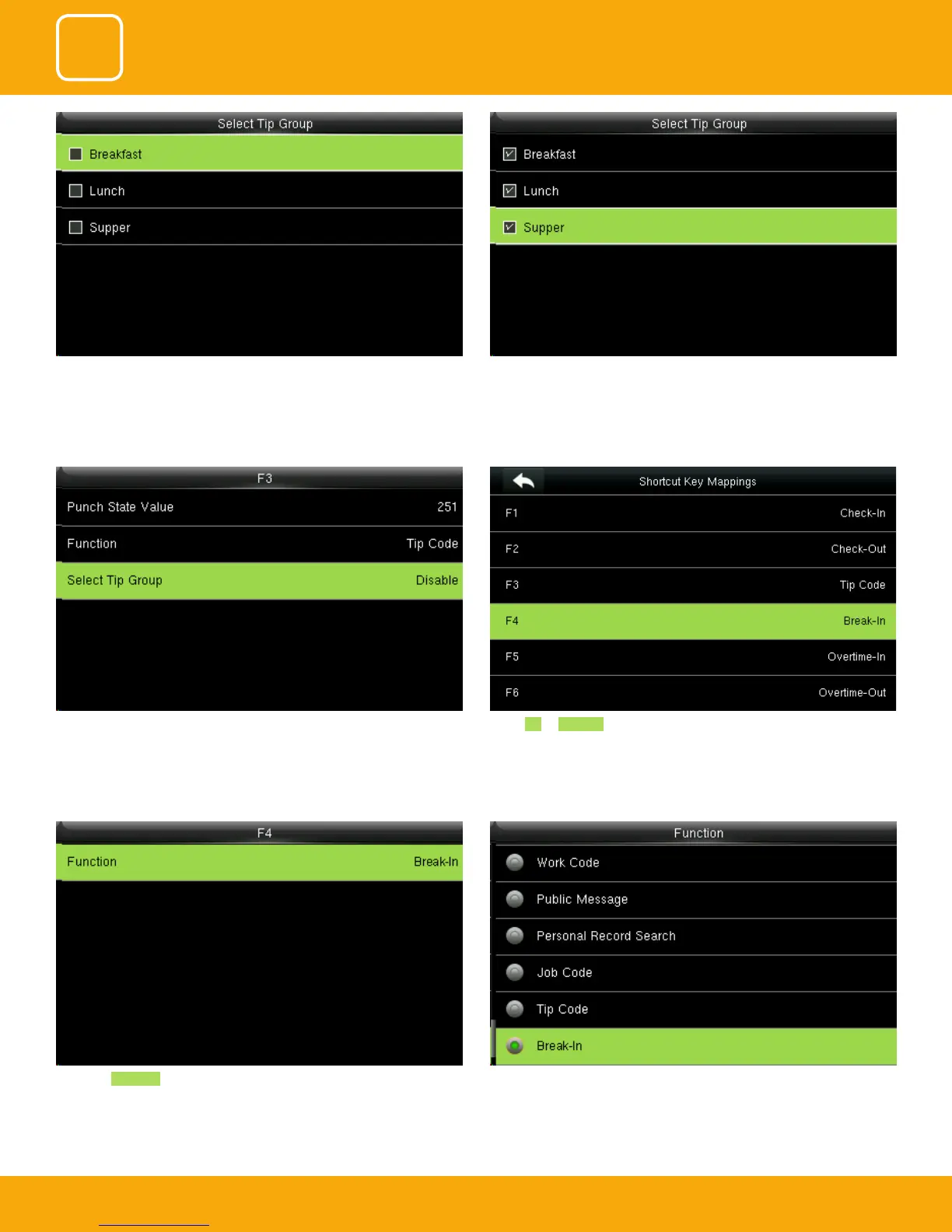 You can change the functions from above.Select the Function Break-In for F4 and the F4 key will display as Break-In on