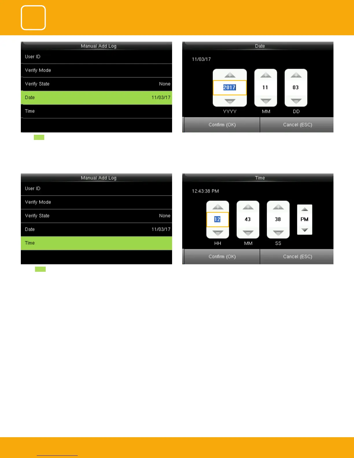 Select Date . You can set the date by using the keypad. Here the date is set to 11/03/2017.