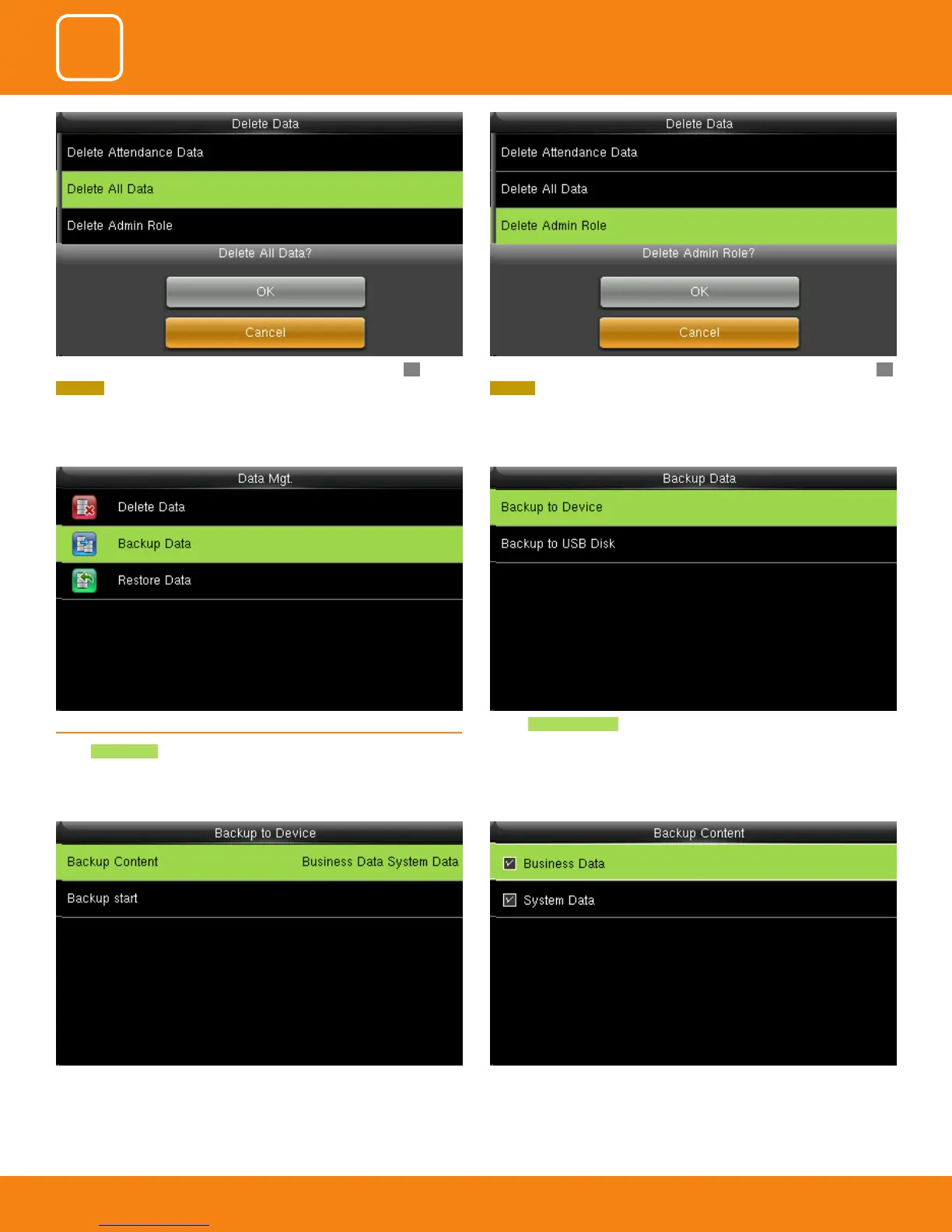You can select the content you want to backup.Select the local conguration items to be back upped to device the selected