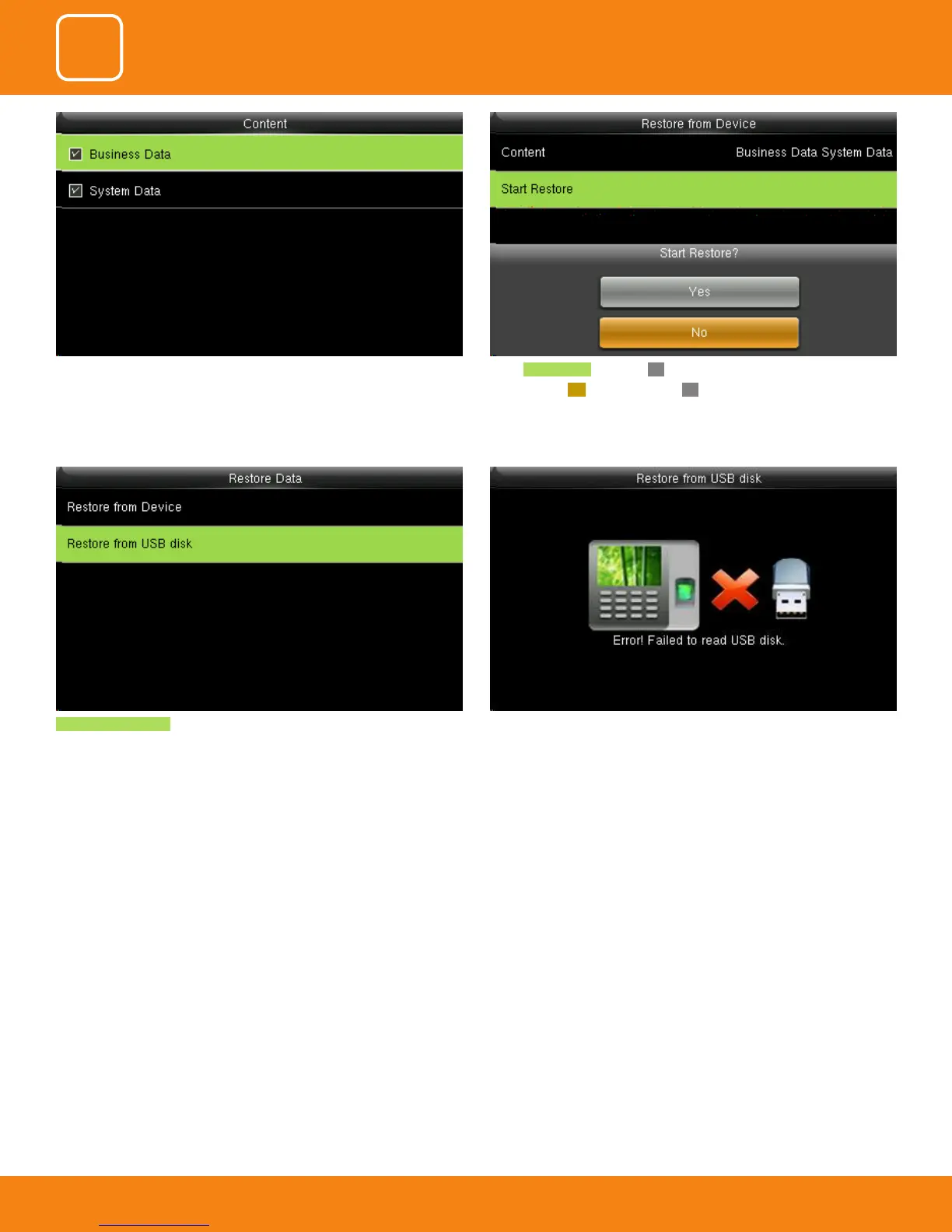 Restore from USB Disk the operations are similar to those performed to