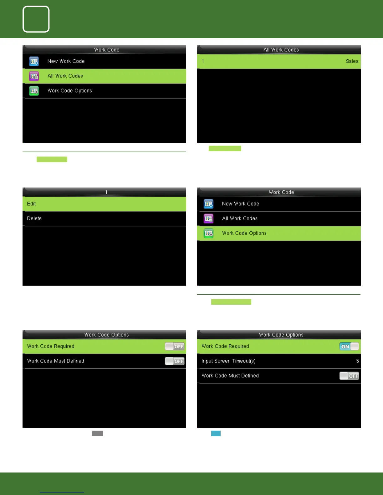 midex uFace800 - All Work Codes; Set Work Code Requirements