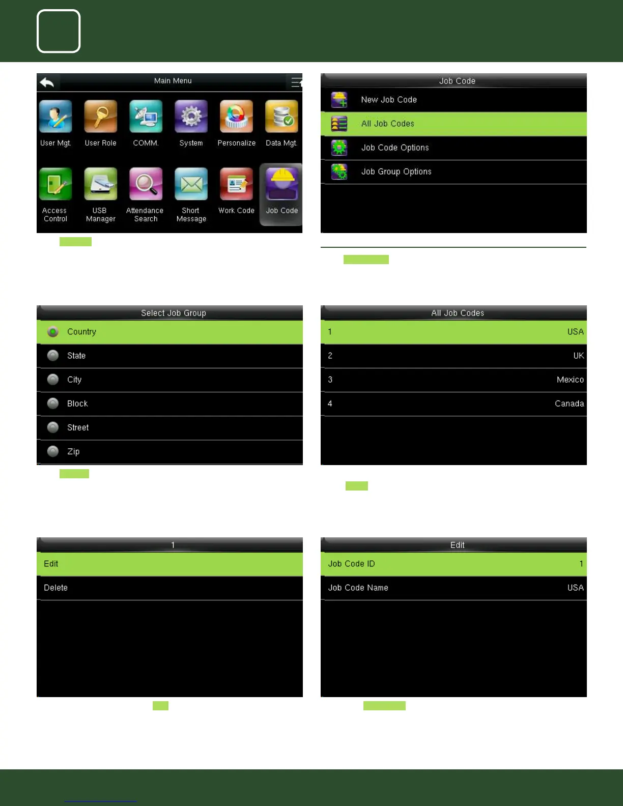 Select Country The job codes assign to dierent country will be displayed as shown above.