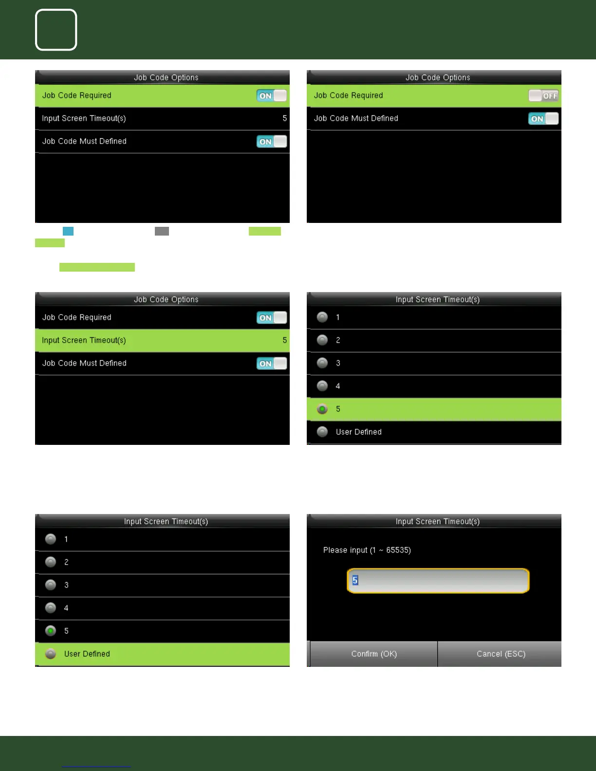 Required function “Input Screen Timeout(s)” to set up the time period for
