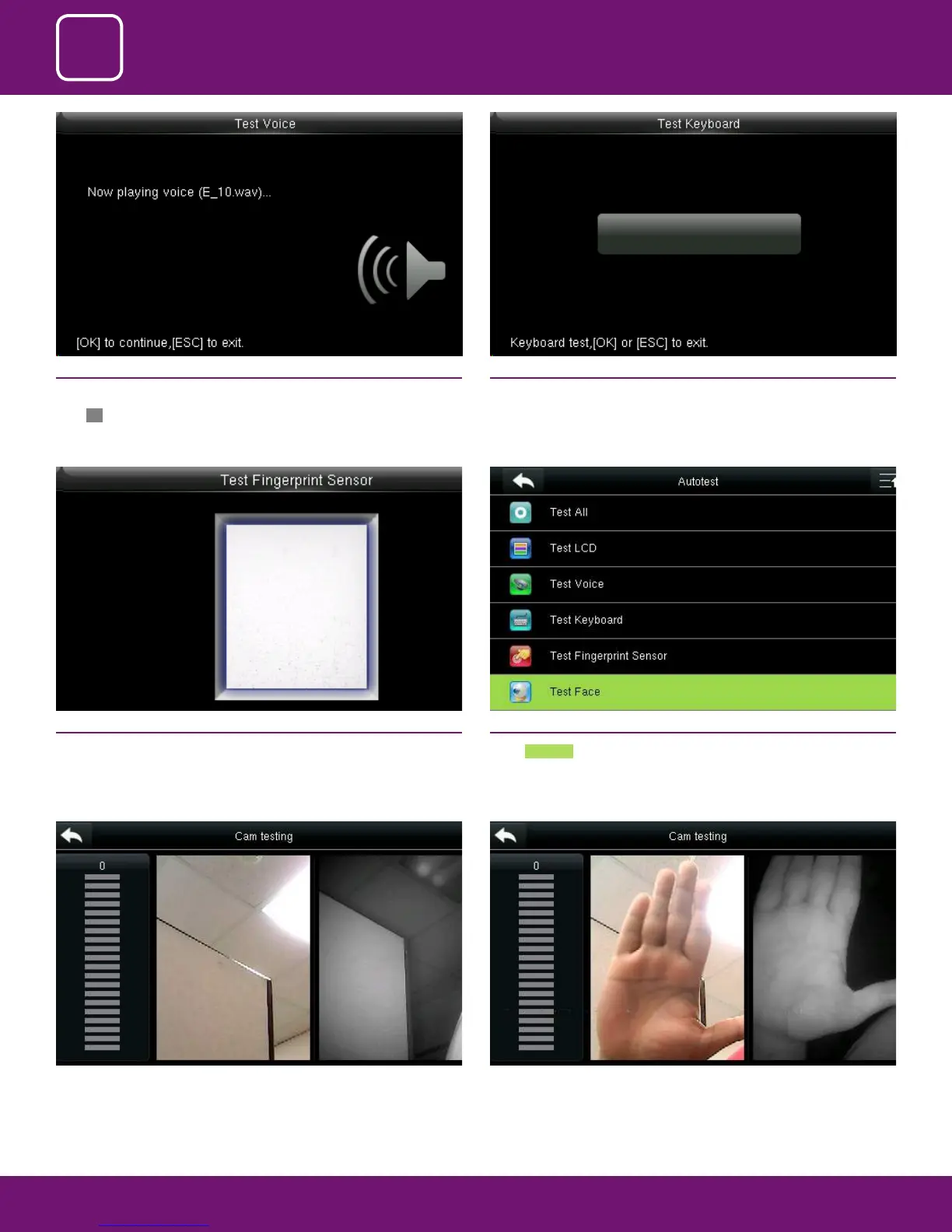 The terminal automatically tests whether the ngerprint collector works
