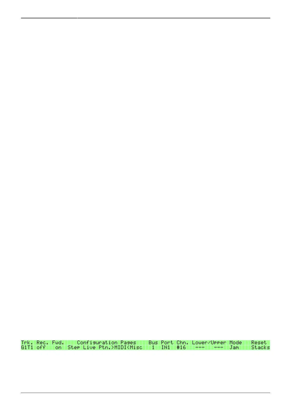 The MIDI Configuration page is available from the main menu, or with MENU + MIDI GPB1–2