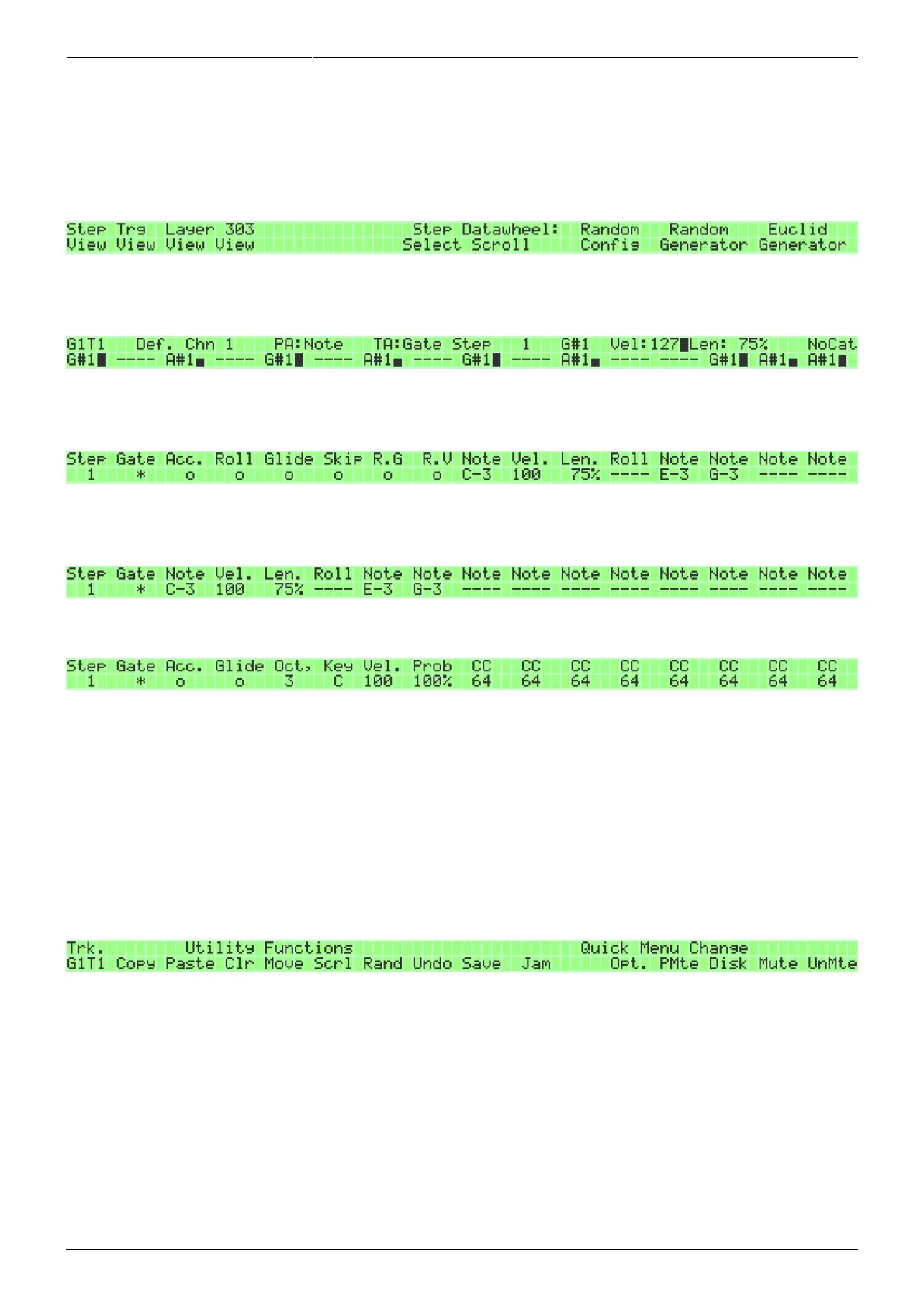 1. Step View (the default) shows 16 steps at a time, but only one parameter layer (in the LCDs) and
