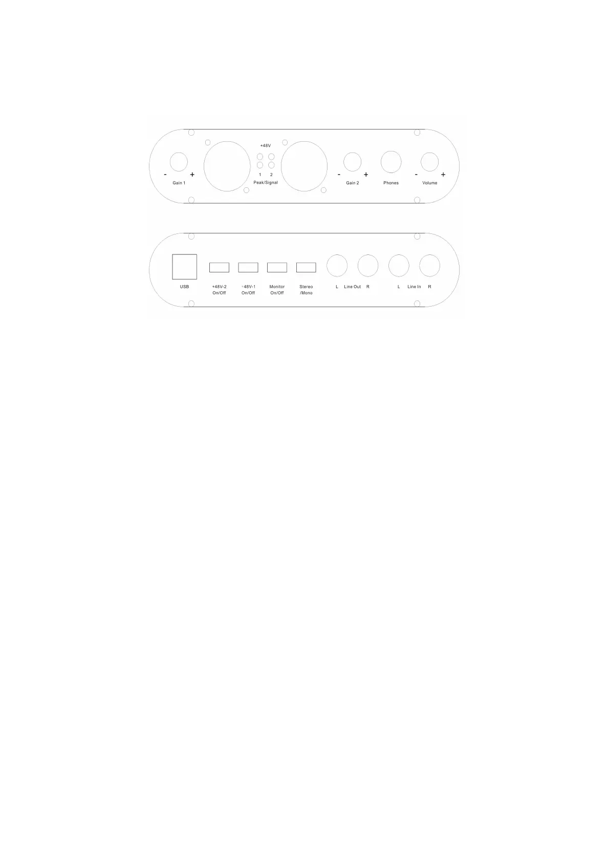 eingesteckt. Mit dem Gain Reglern neben den XLR/Klinken-Eingängen regeln Sie den
