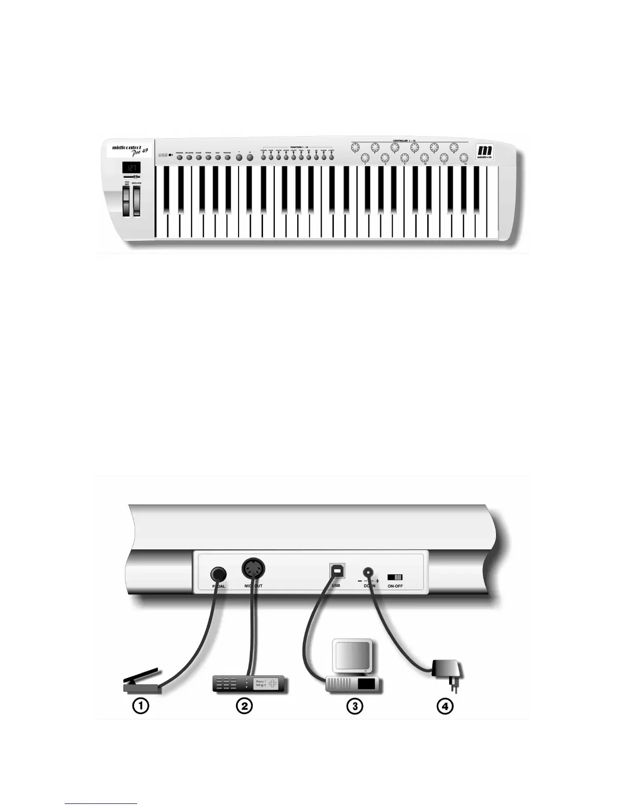 Miditech midicontrol Pro 49 - User Panel; Back Panel Connections