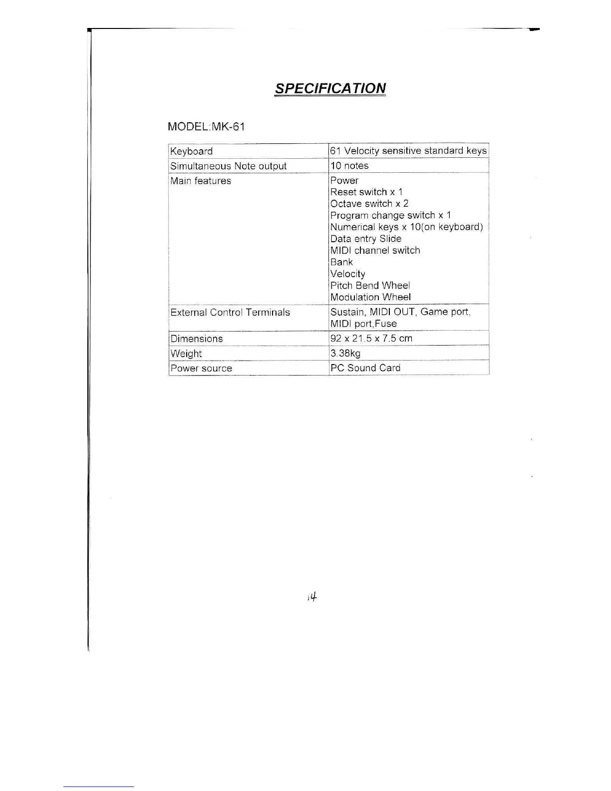 Miditech MK-61 - Specifications