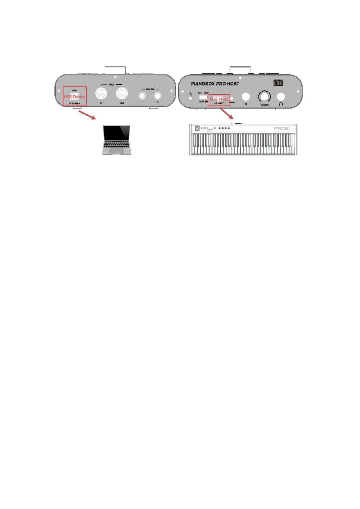 The PianoBox Pro Host supports the simultaneous use of USB Device and USB Host.