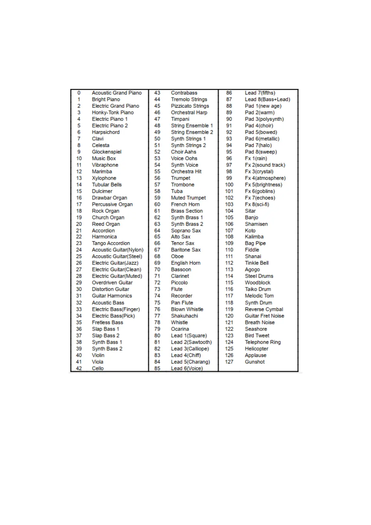 Miditech PianoBox Pro Host - 8. Program and Drum Pattern Lists; 8.1 List of the Programs