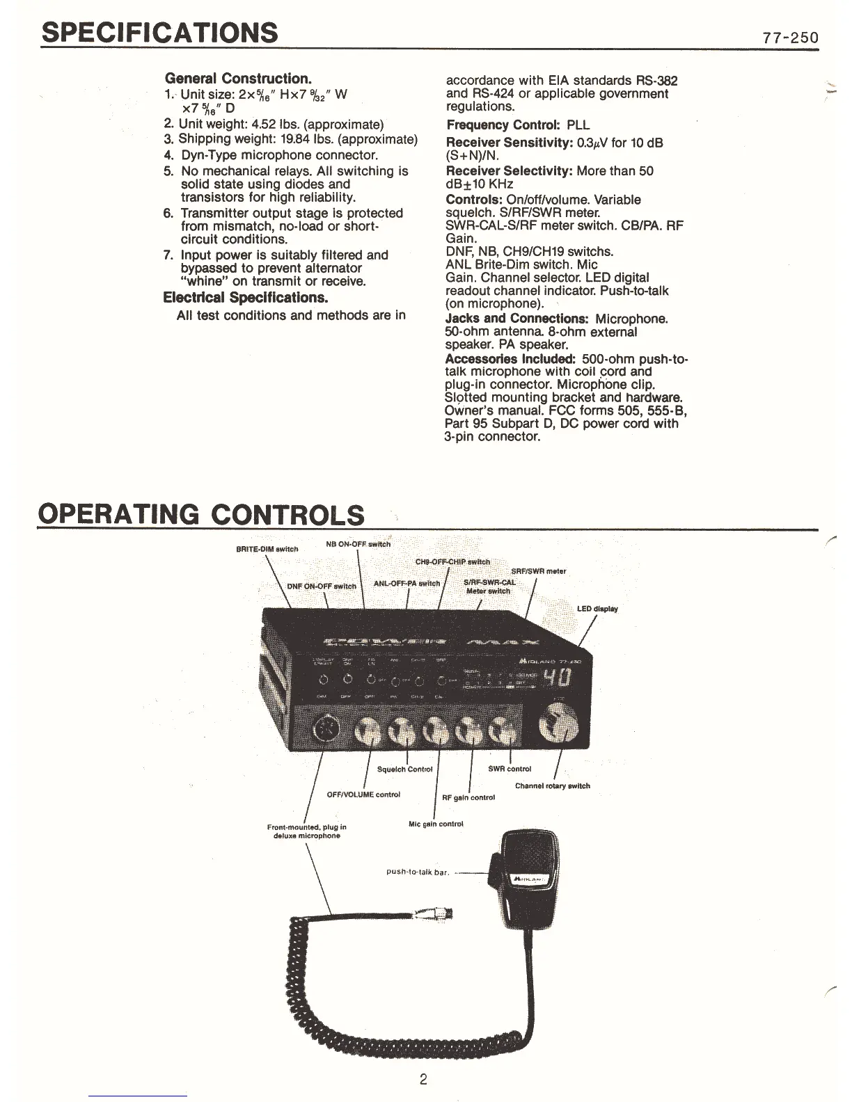 Midland 77-250 - Specifications; General Construction; Electrical Specifications