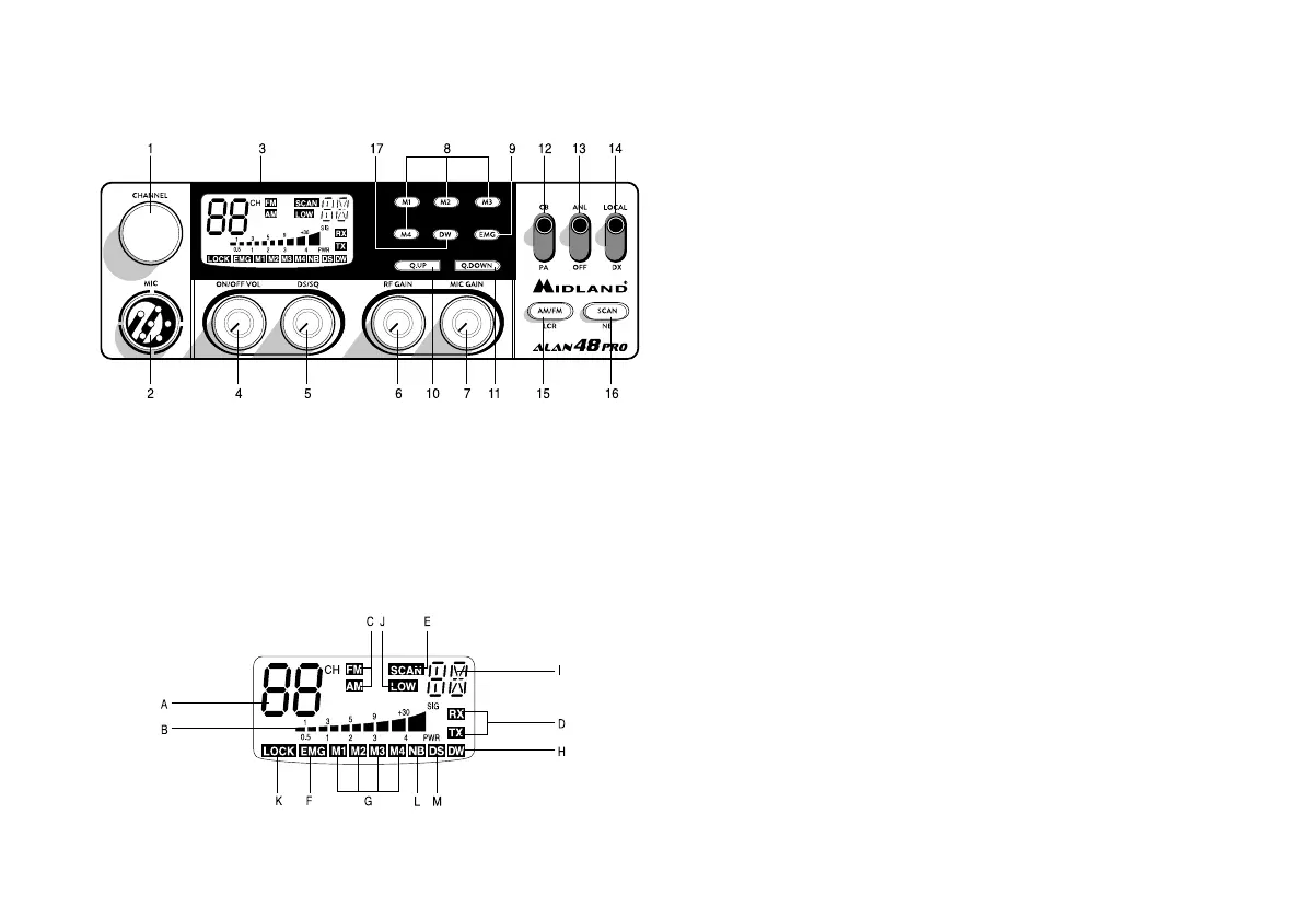 7. Control de ganancia del micrófono: En modo TX, controla la amplifica-
