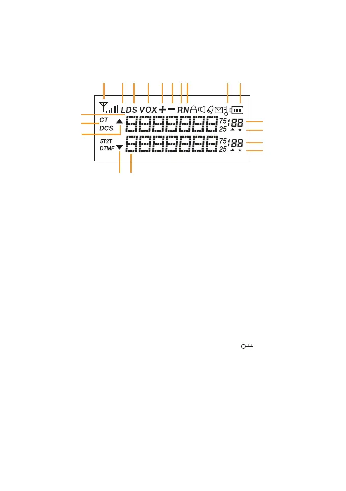 15. Indicates the VFO in use and the current menu or function setting. This