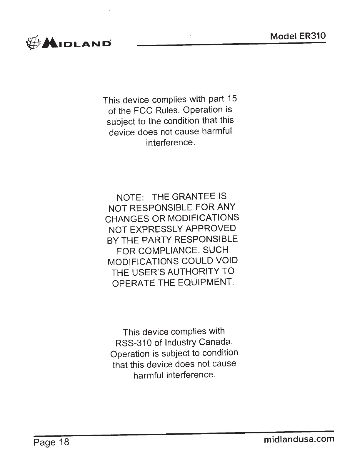 Midland E+READY ER310 - Page 18