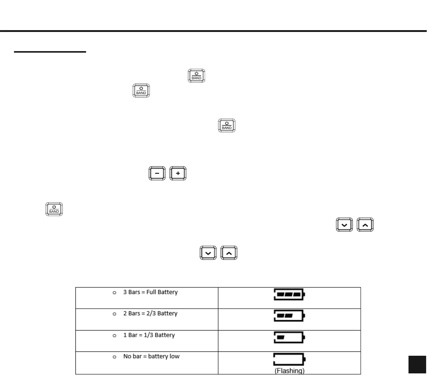 setting. Press and hold keys to automatically scan to the next radio station.
