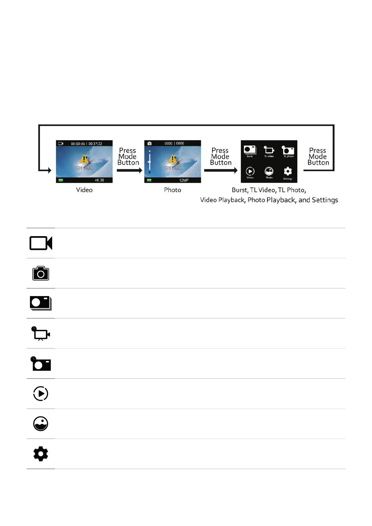 Turn camera ON and repeatedly press the Power/mode button to cycle through camera mo-
