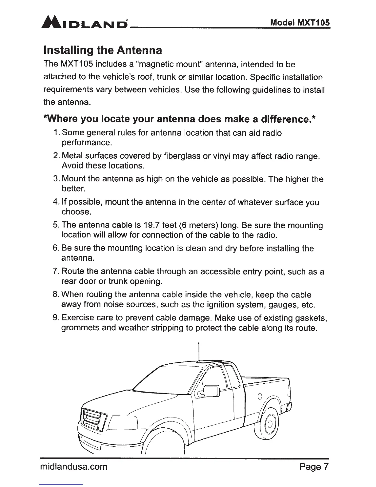 Mount the antenna as high on the vehicle as possible. The higher the
