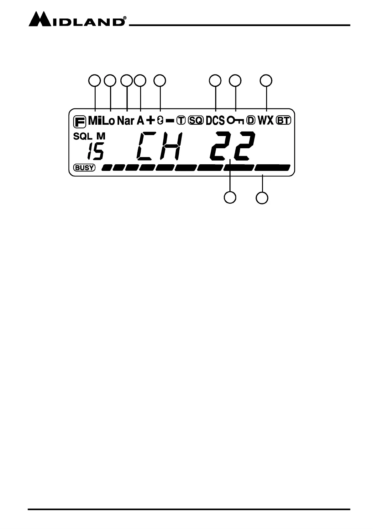 Midland MICRO MOBILE MXT500 - LCD Display Elements; LCD Icons and Indicators; Key Display Information
