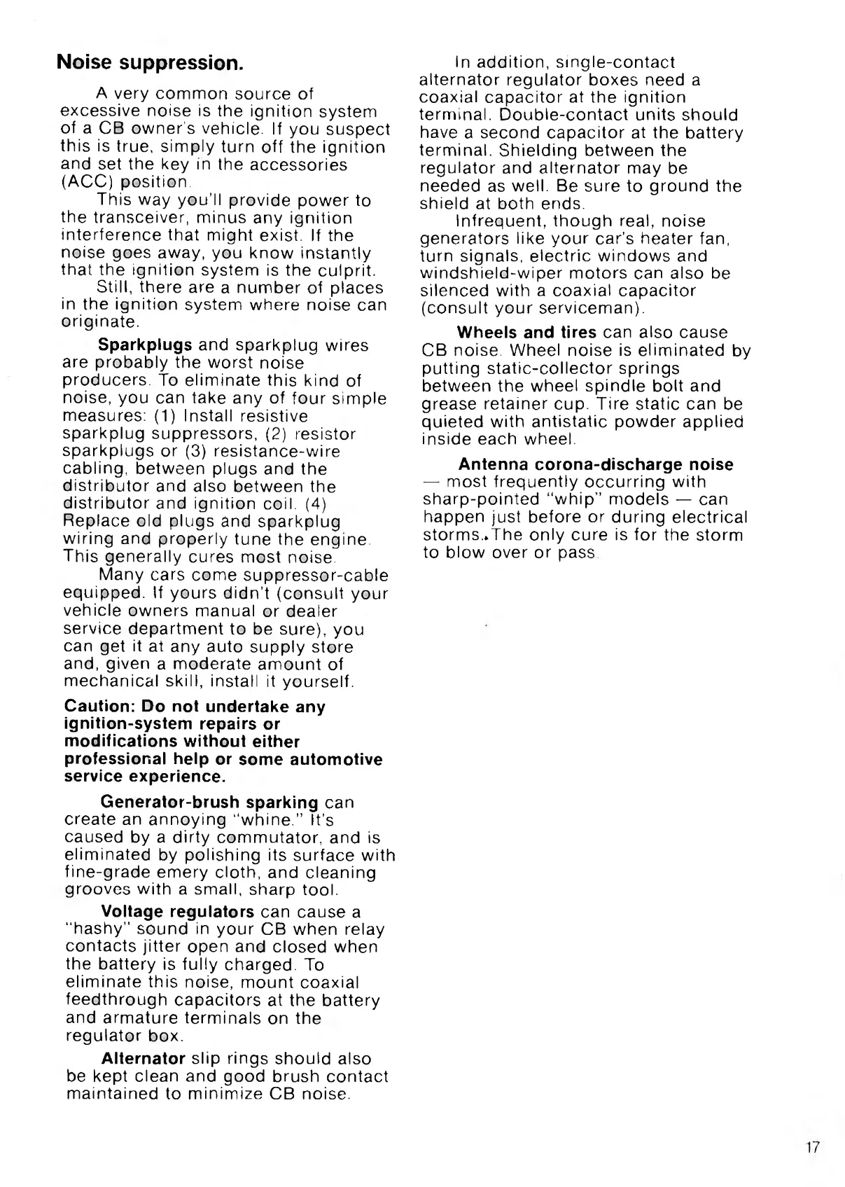 maintained to minimize CB noise.