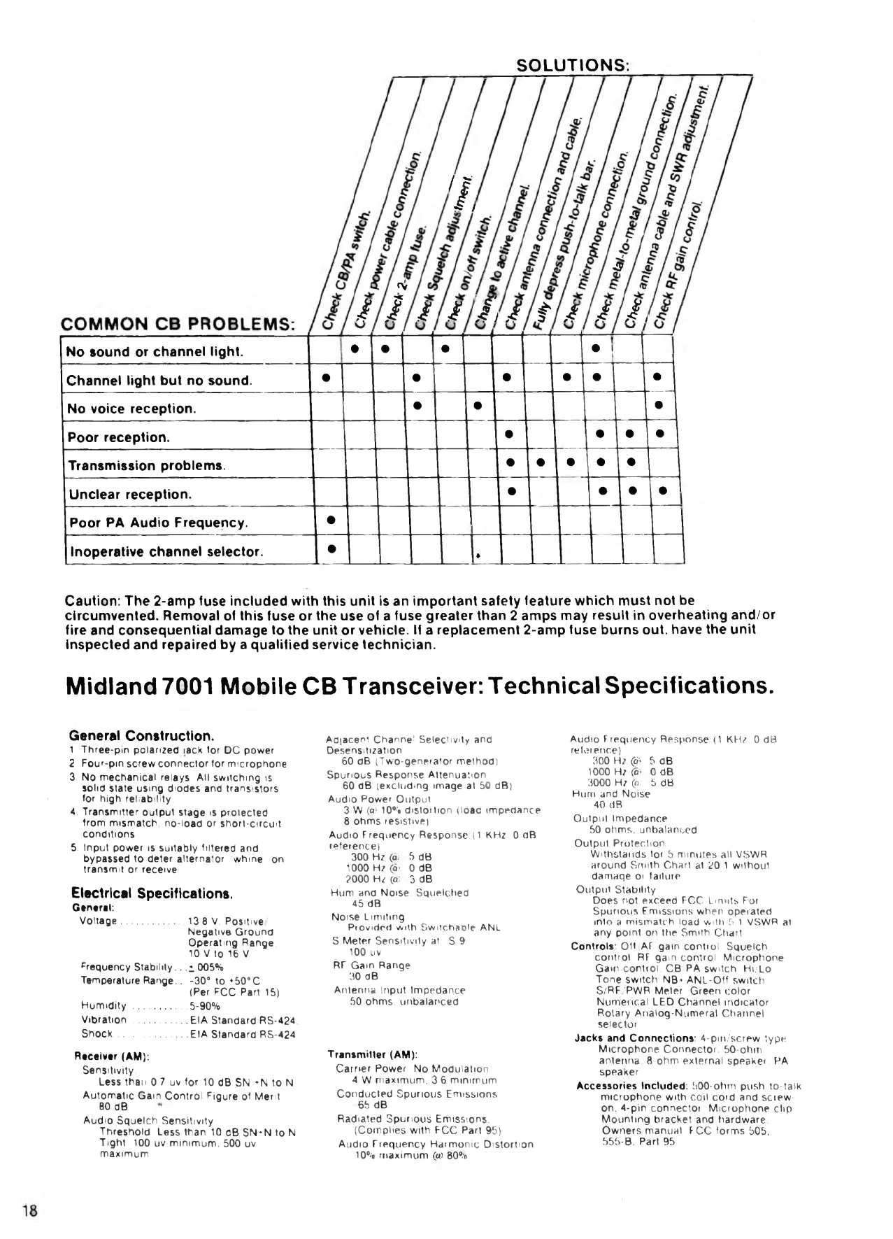 Midland 7001 Mobile CB Transceiver: Technical Spécifications.