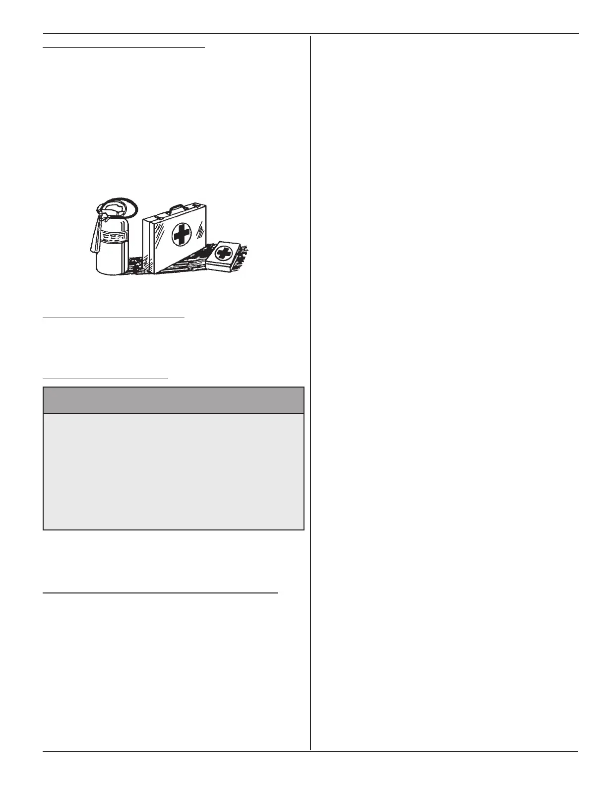 Keep a re extinguisher and rst aid kit close to
