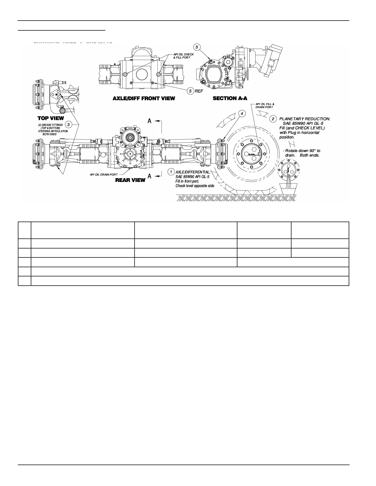 1 Axle/Differential SAE 85W90 API GL-5 Monthly Every 700 Hours